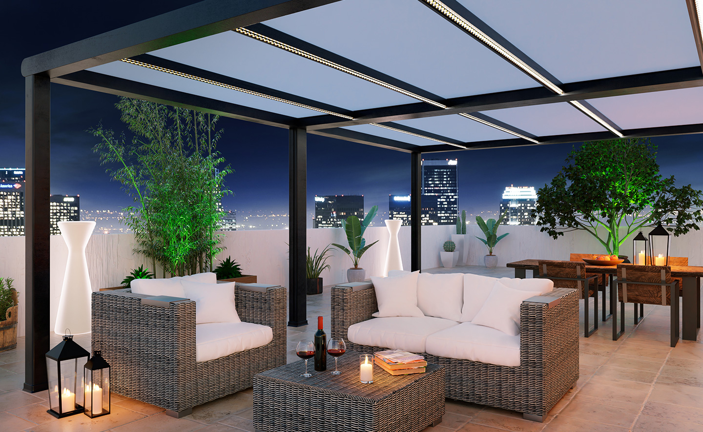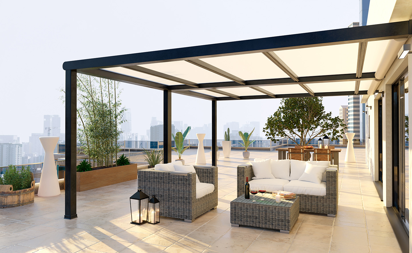 Alle unsere Pergola- und Überdachungssysteme sind in mehreren Farben, Formen und Mechaniken verfügbar.
